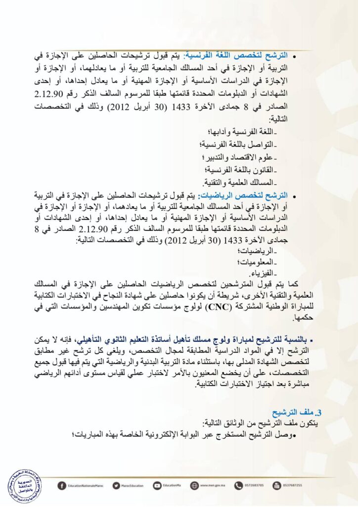 - قراءة إعلان المباراة والتخصصات المطلوبة بدقة قبل التسجيل.