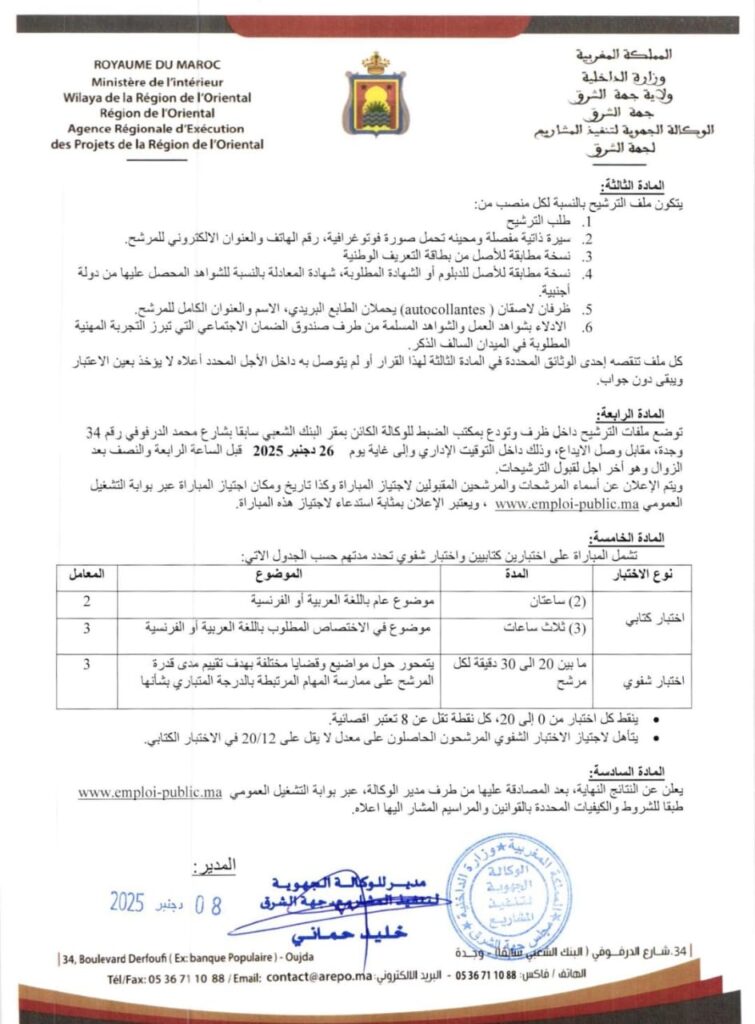 Ce concours est une étape importante pour toute personne souhaitant contribuer activement au développement de la région de l’Oriental et bâtir une carrière solide dans le secteur public.