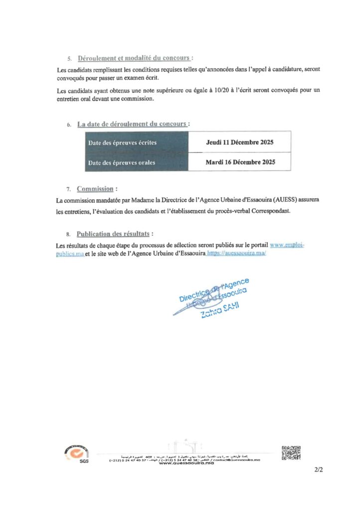 Pour les candidats retenus, rejoindre l’Agence Urbaine d’Essaouira représente une opportunité de travailler sur des projets concrets et structurants, de développer des compétences professionnelles dans le domaine de l’urbanisme et d’intégrer un environnement public stable.