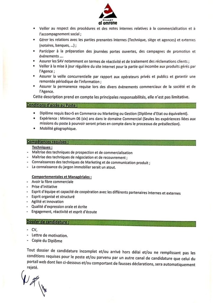 Le recrutement de Conseillers Commerciaux par le Groupe Al Omrane à Casablanca-Settat représente une opportunité unique pour les professionnels du secteur commercial souhaitant contribuer au développement urbain et à l’amélioration de l’habitat au Maroc. Les candidats sélectionnés auront l’occasion de participer activement à des projets structurants, de développer leurs compétences et de s’épanouir au sein d’une entreprise engagée dans le progrès social et économique du pays.