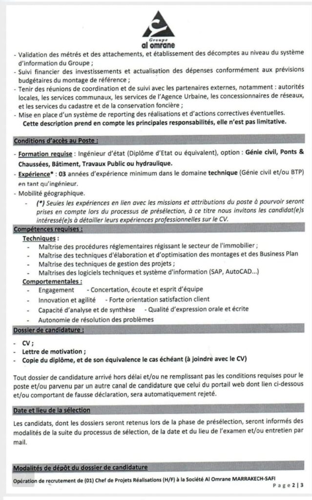 De plus, le Groupe offre un environnement propice à l’évolution professionnelle, à la formation continue et à l’acquisition de compétences spécialisées dans des domaines techniques et juridiques. Rejoindre Al Omrane, c’est donc s’investir dans un projet structurant pour le Maroc tout en développant sa carrière.