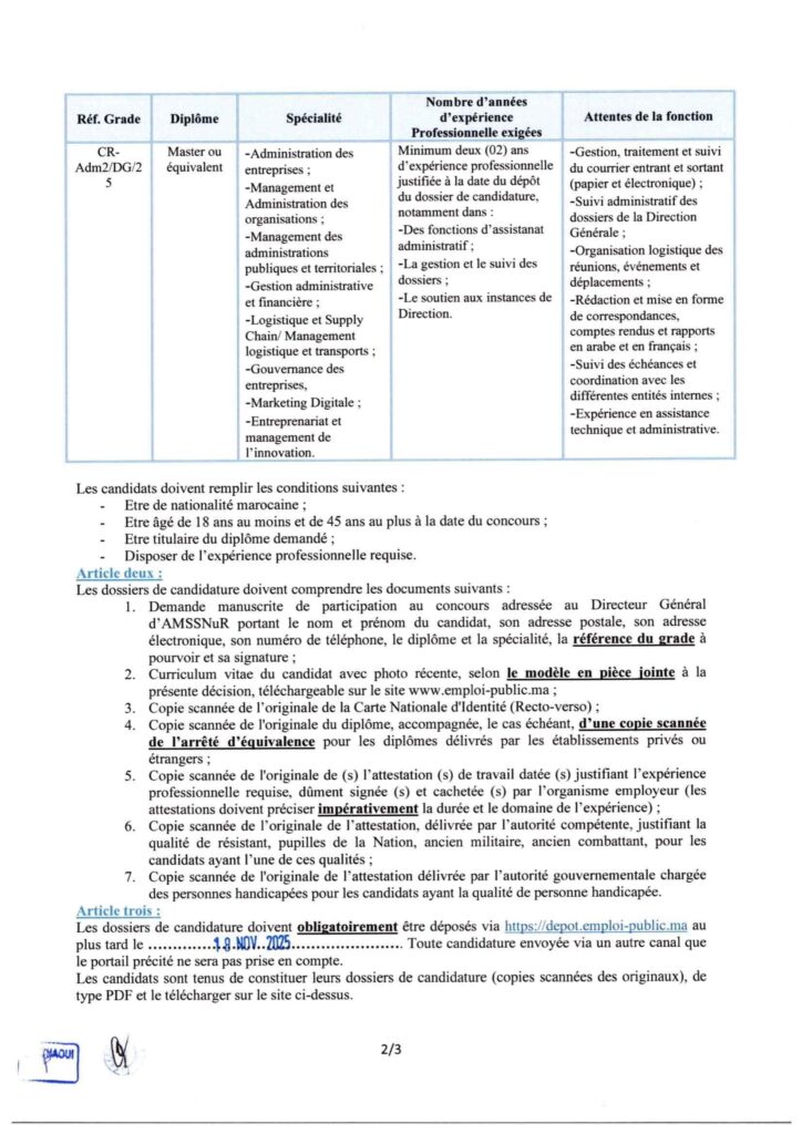 Le concours AMSSNuR 2025 pour trois postes d’Administrateur de 2e grade est une occasion rare pour les candidats motivés et rigoureux. L’intégration dans cette agence vous permettra de participer à une mission d’intérêt public, dans un domaine stratégique et exigeant.