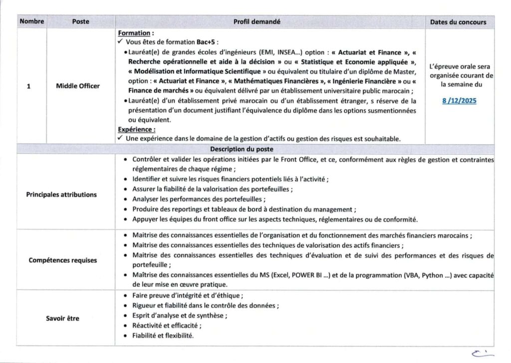CMR vient d’annoncer son nouveau concours de recrutement 2025, une opportunité importante pour tous les professionnels souhaitant intégrer l’administration publique marocaine. Cette campagne de recrutement concerne deux postes essentiels au sein de l’institution, destinés à renforcer ses équipes techniques et financières.