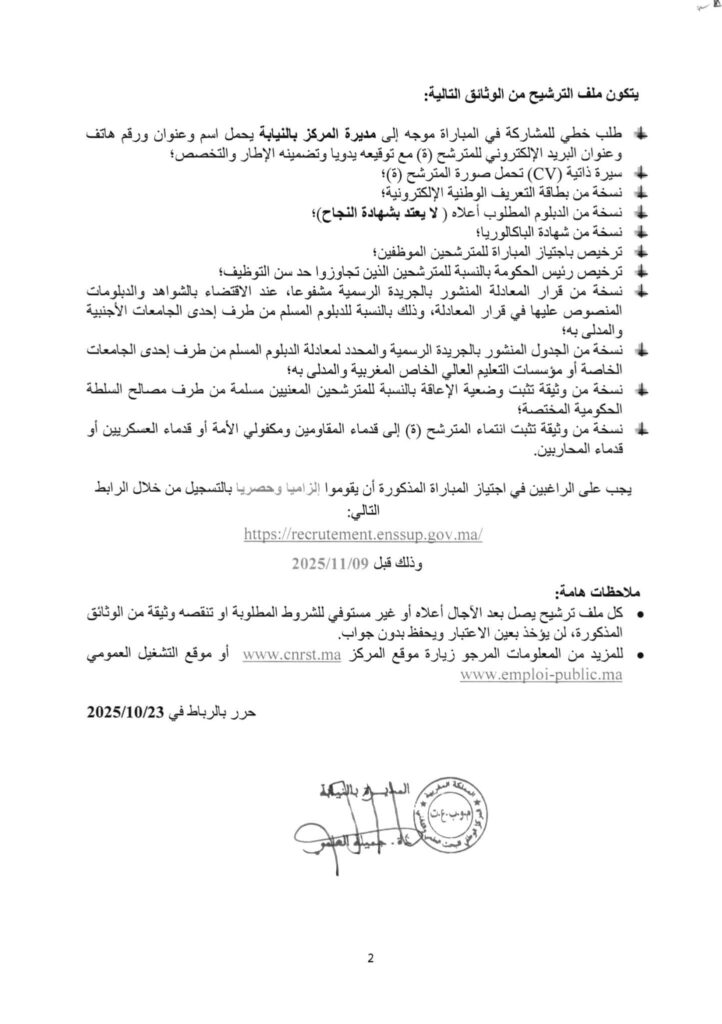 - Disposer du diplôme requis pour le poste demandé (ingénieur d’État, technicien spécialisé, ou licence universitaire selon le grade) ;