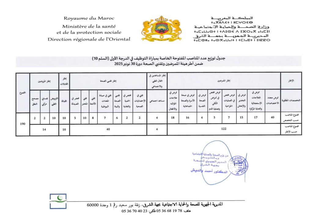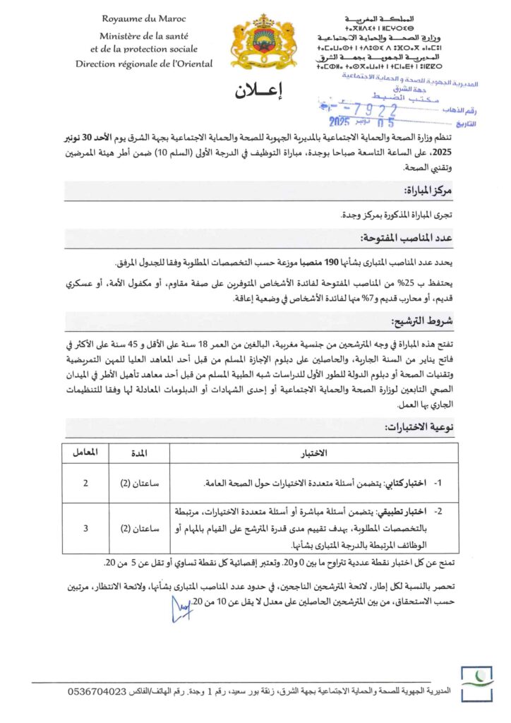 Les résultats seront publiés officiellement par la Direction Régionale de la Santé de l’Oriental après délibération du jury.
