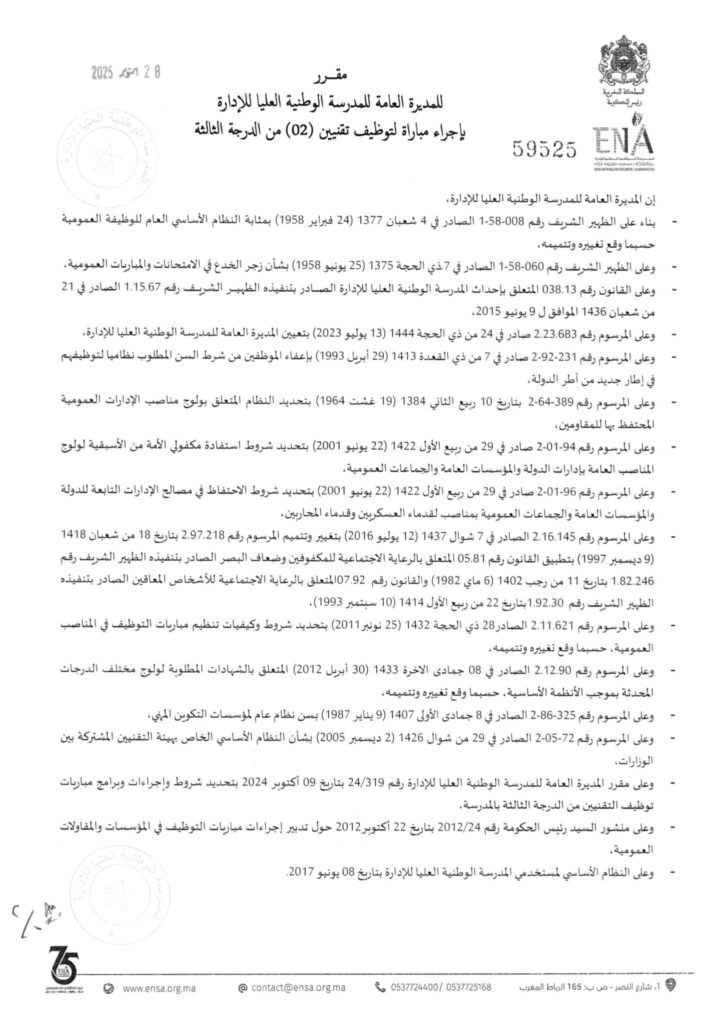 ENSA : L’École Nationale Supérieure de l’Administration lance son « ENSA Recrute : Offre de concours » pour l’année 2025. Cette initiative concerne cinq (5) postes à pourvoir, permettant à des candidats motivés d’intégrer une institution majeure de la haute fonction publique marocaine. Intégrer l’ENSA offre non seulement une carrière prestigieuse, mais également la possibilité de contribuer activement à la modernisation de l’administration publique. Pour bien préparer votre candidature, il est conseillé de suivre les informations et conseils disponibles sur votre site Wrokk.