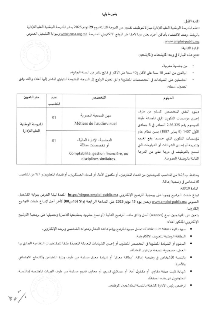 - Visibilité professionnelle : Être recruté à l’ENSA ouvre des portes vers des postes de direction ou d’encadrement dans d’autres structures publiques.