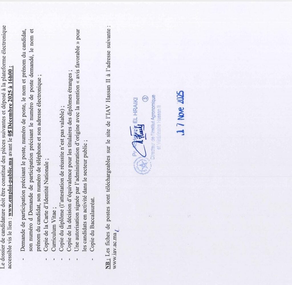 - Une demande manuscrite adressée au Directeur de l’IAV Hassan II, précisant le poste choisi.