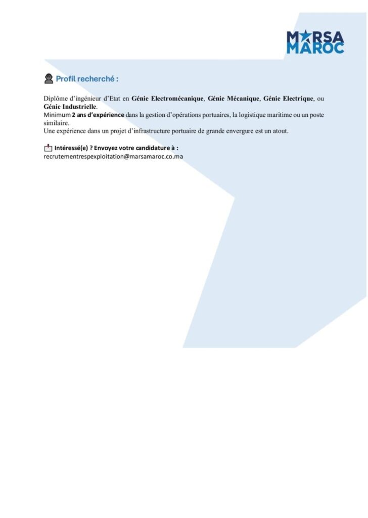 Pour ce poste, Marsa Maroc recherche un candidat ayant :
