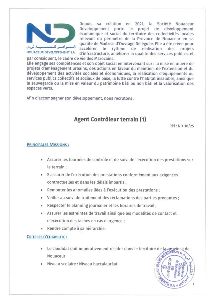Le recrutement lancé par Nouaceur Développement pour l’année 2025 témoigne de la volonté de renforcer ses équipes et d’améliorer ses services à la population.