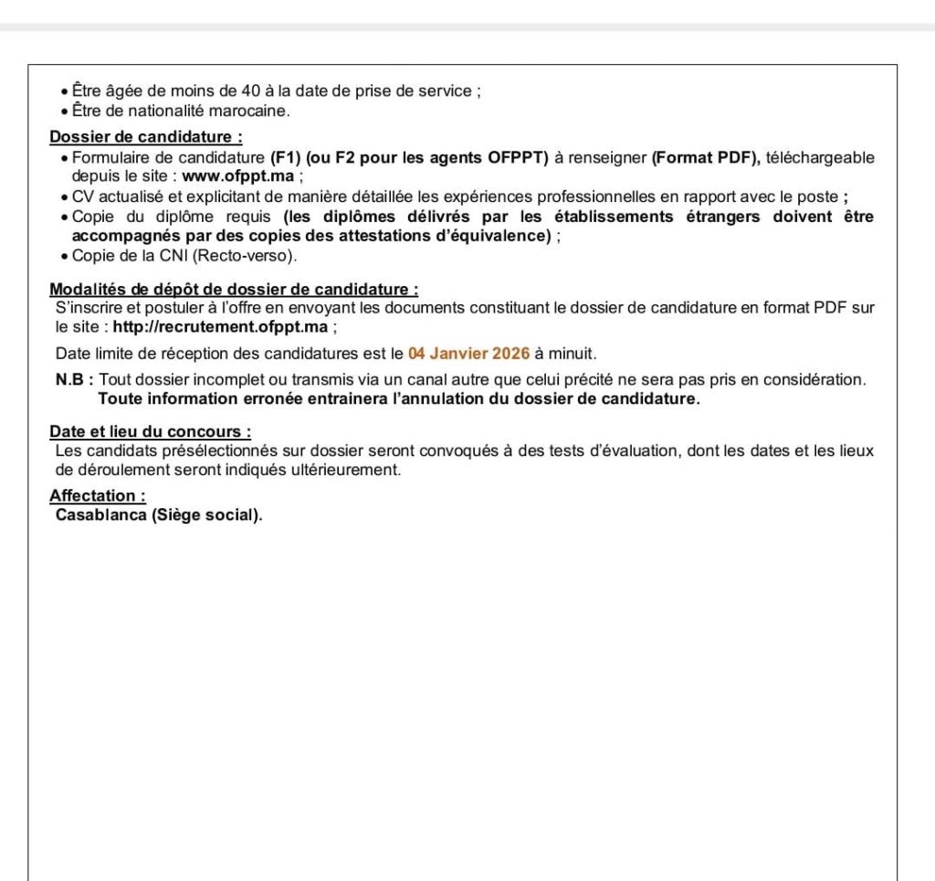 L’annonce OFPPT Recrute : Offre de concours à Casablanca représente une opportunité professionnelle significative pour les candidats qualifiés souhaitant intégrer l’OFPPT, une institution publique prestigieuse au Maroc. Avec un processus de candidature en ligne, des critères clairement définis et un délai raisonnable pour postuler, ce concours constitue une étape importante dans votre carrière administrative.