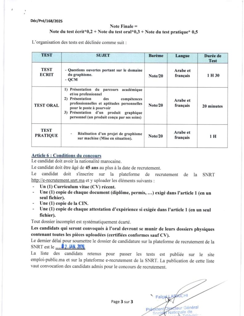 Comment postuler au concours SNRT 2026