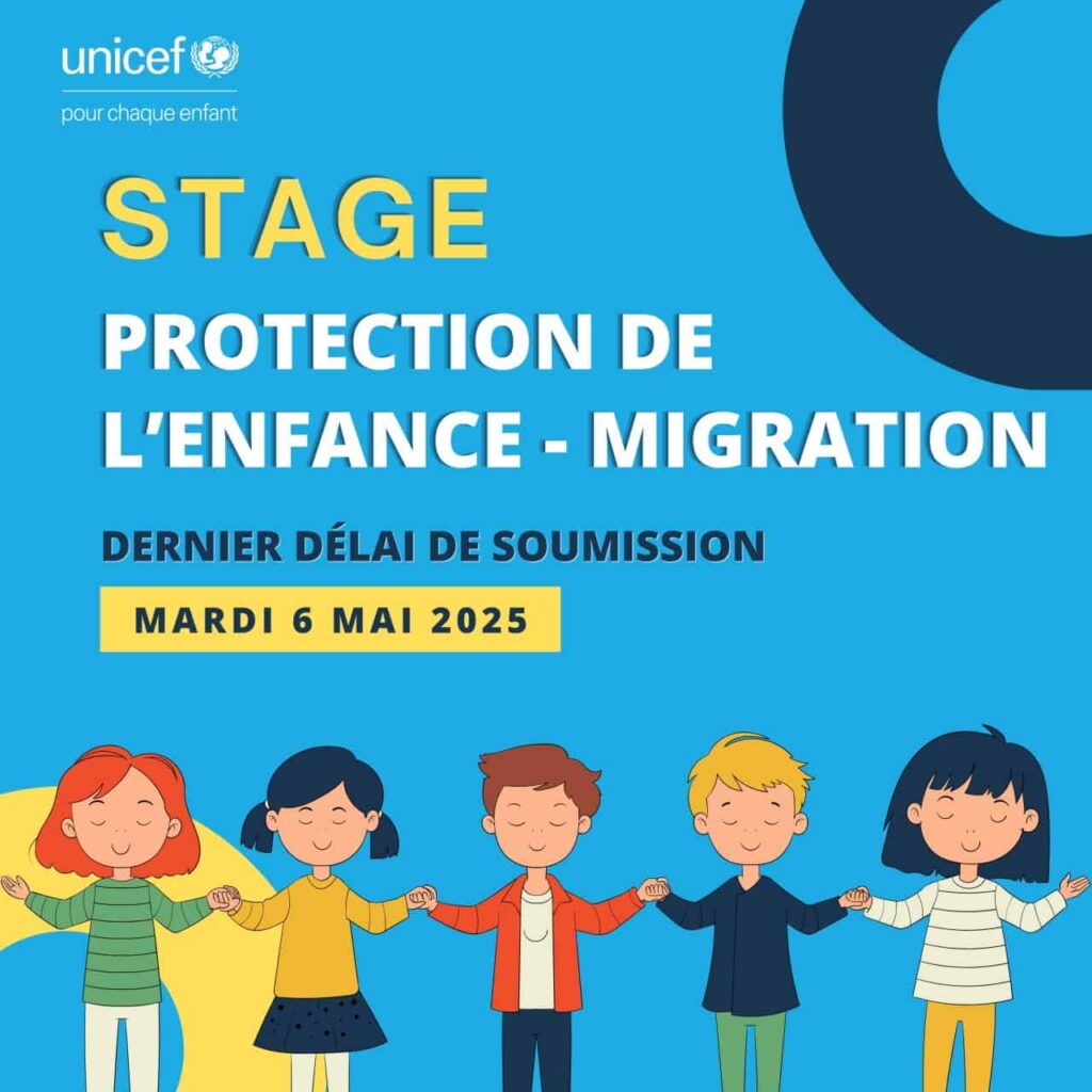 UNICEF Rabat : Découvrez deux opportunités de stage chez UNICEF Rabat pour contribuer activement à la protection des droits des enfants, notamment ceux en situation de migration. Rejoignez une mission humanitaire enrichissante et développez vos compétences professionnelles