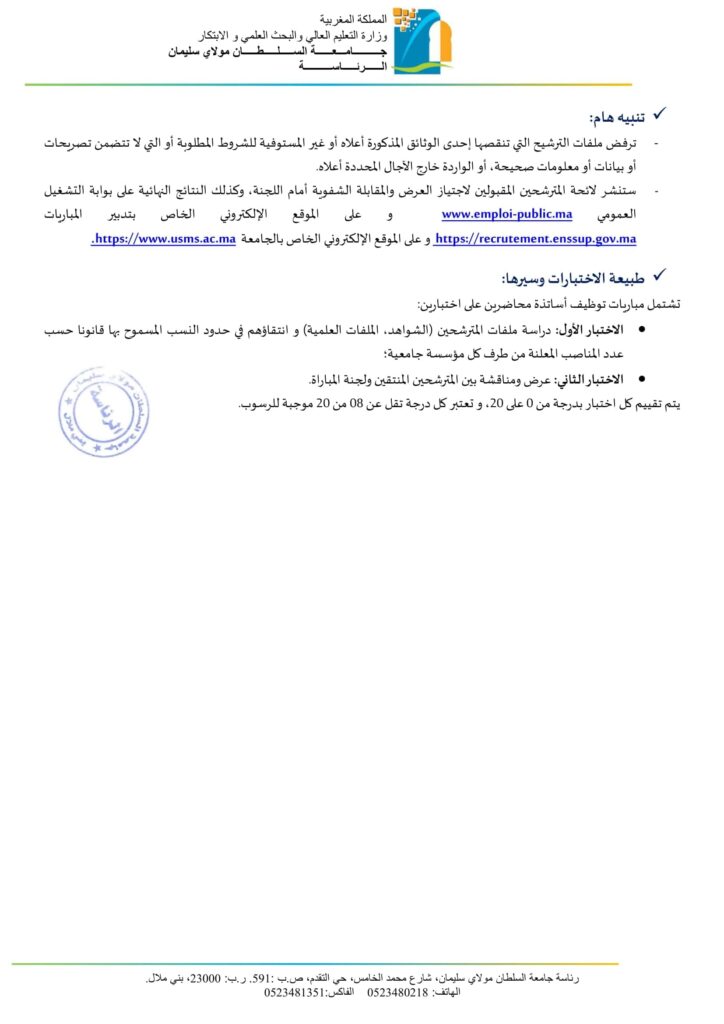 Tags: concours marocemploi publicUniversité Sultan Moulay Slimane concours